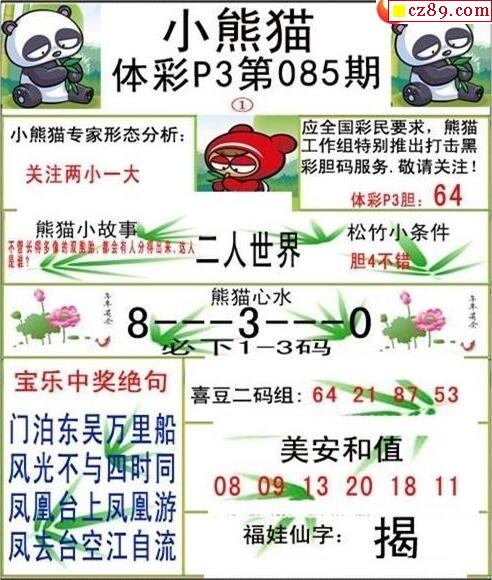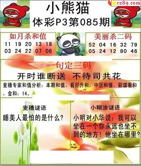 2021年085期牛彩网体彩P3画迷图谜汇总分享