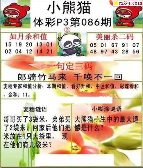 2021年086期牛彩网体彩P3画迷图谜汇总分享