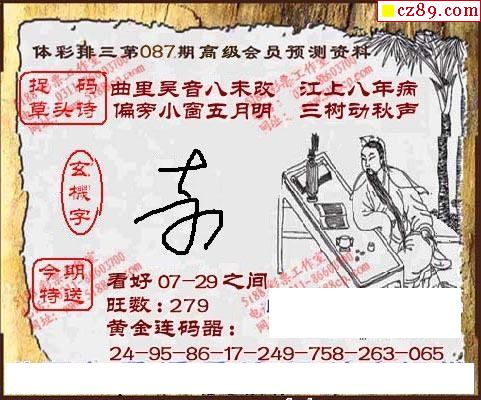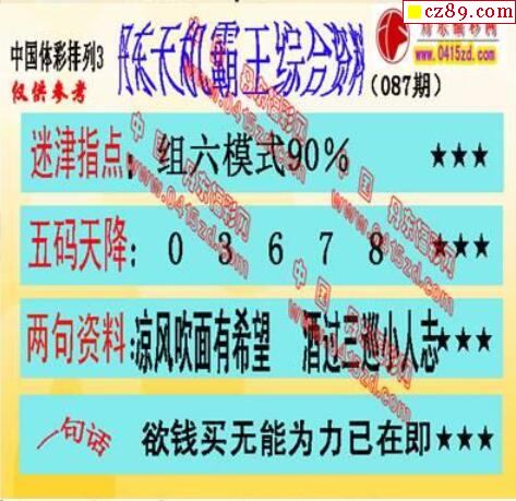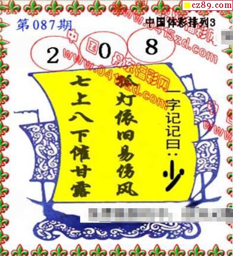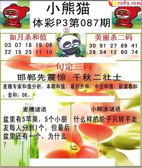 2021年087期牛彩网体彩P3画迷图谜汇总分享