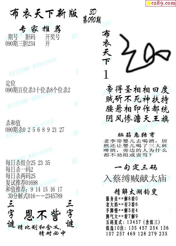 牛彩版3D字谜彩报图25年337期打印版