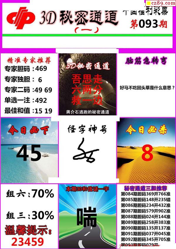 牛彩版3D字谜彩报图25年340期打印版