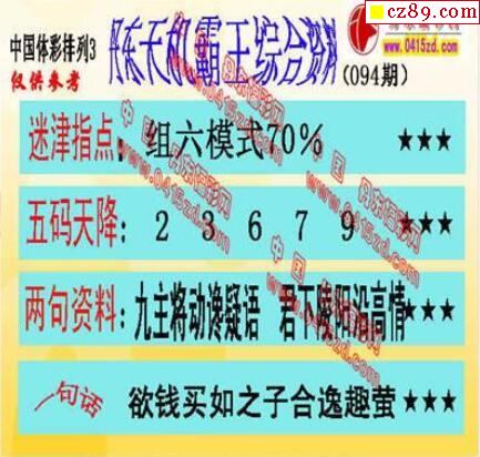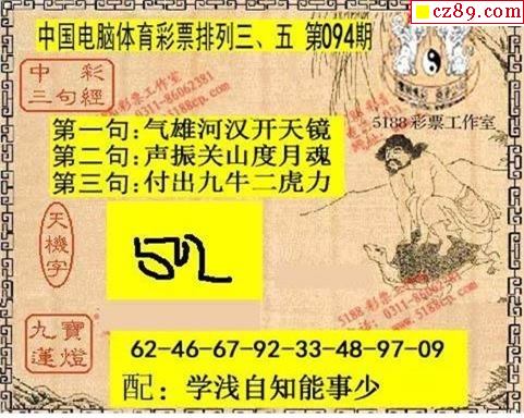 2021年094期牛彩网体彩P3画迷图谜汇总分享
