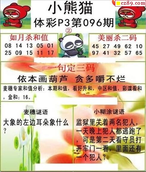 2021年096期牛彩网体彩P3画迷图谜汇总分享