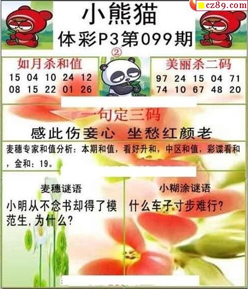2021年099期牛彩网体彩P3画迷图谜汇总分享