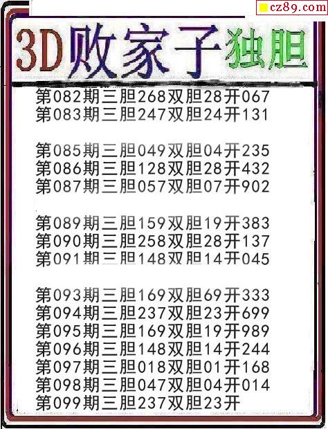 牛彩版3D预测彩报图25年334期打印版