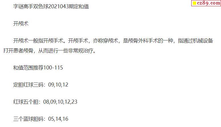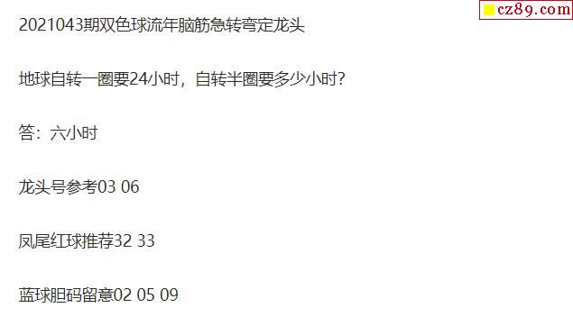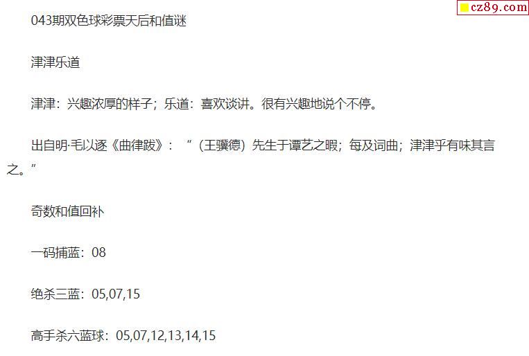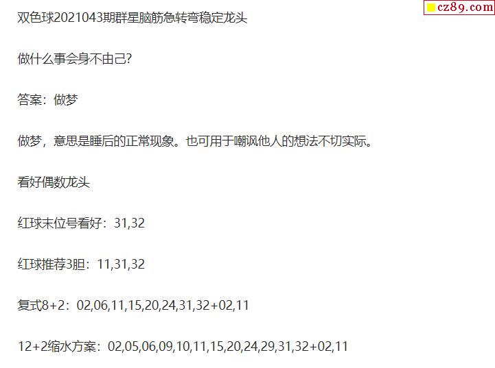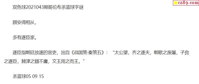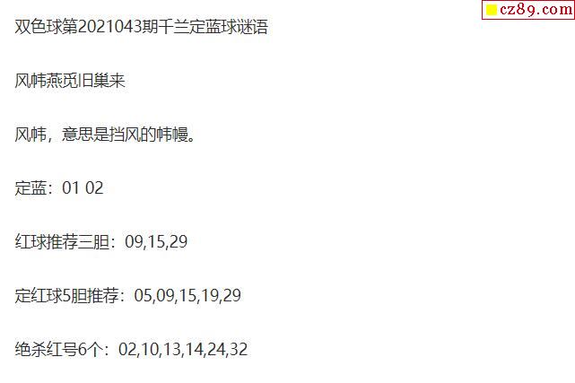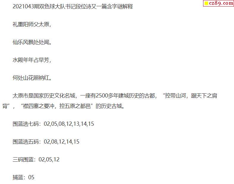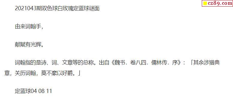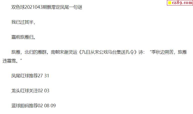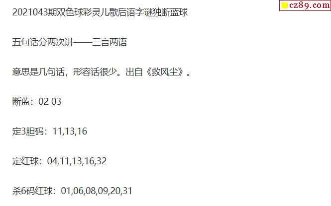 2021年043期牛彩网双色球字迷图谜汇总