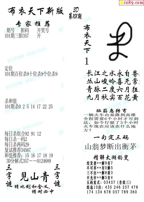 2025330期3D图谜汇总(一)