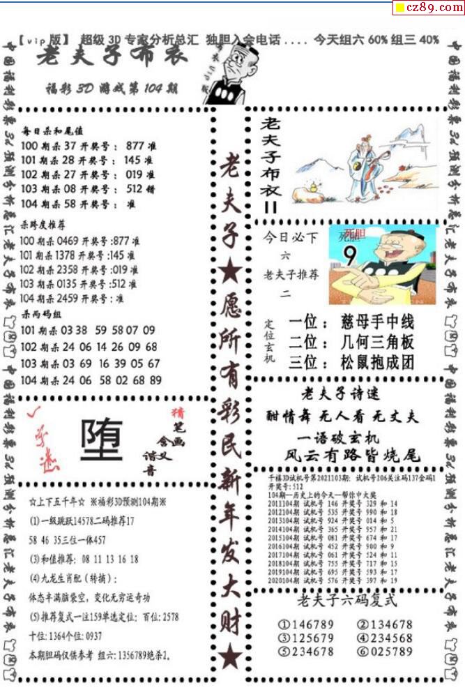 老夫子布衣2025340期3d图谜
