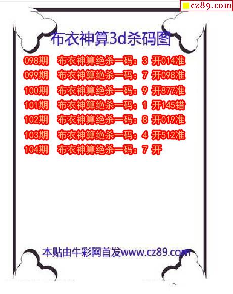 牛彩版3D预测彩报图25年337期打印版