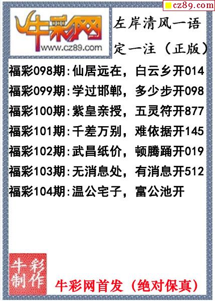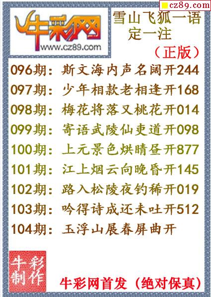 牛彩版3D字谜彩报图25年337期打印版