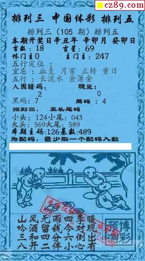 2021年105期牛彩网体彩P3画迷图谜汇总分享
