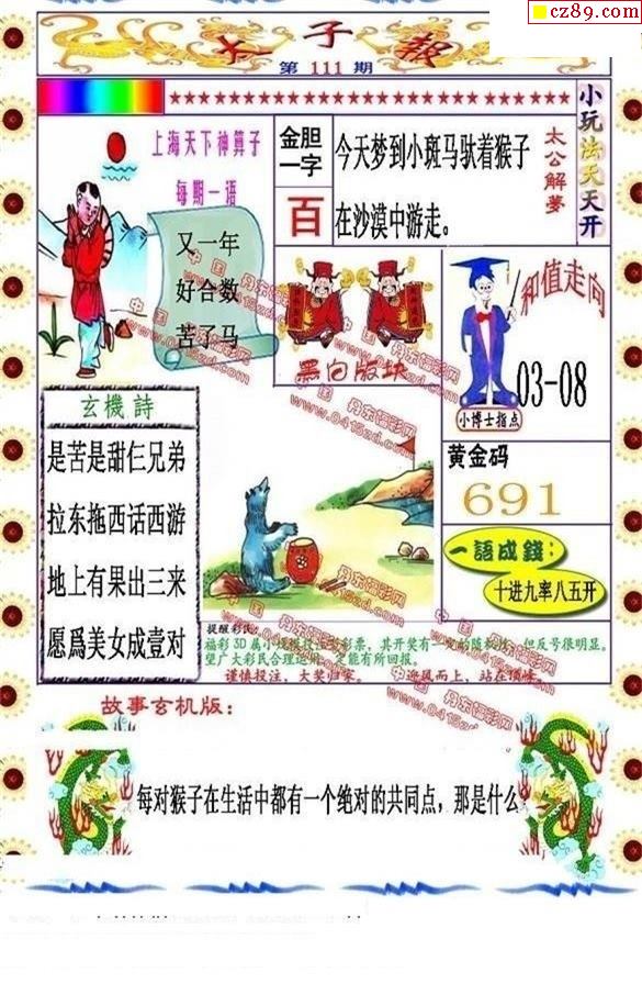 五福财星三胆2025332期3d图谜(原创)
