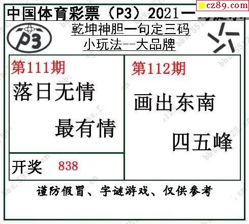 2021年112期牛彩网体彩P3画迷图谜汇总分享