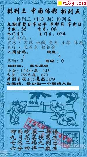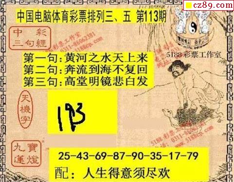 2021年113期牛彩网体彩P3画迷图谜汇总分享
