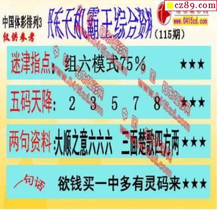 2021年115期牛彩网体彩P3画迷图谜汇总分享