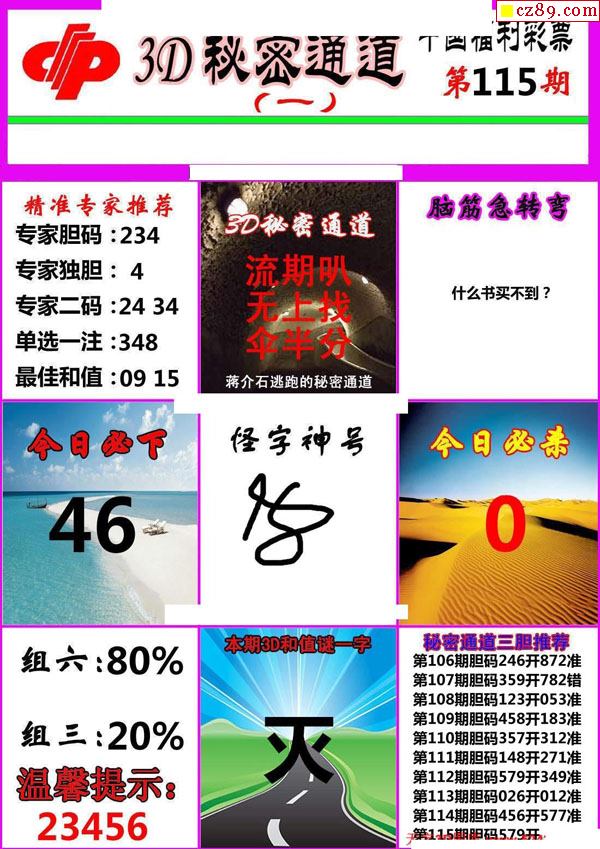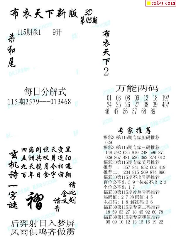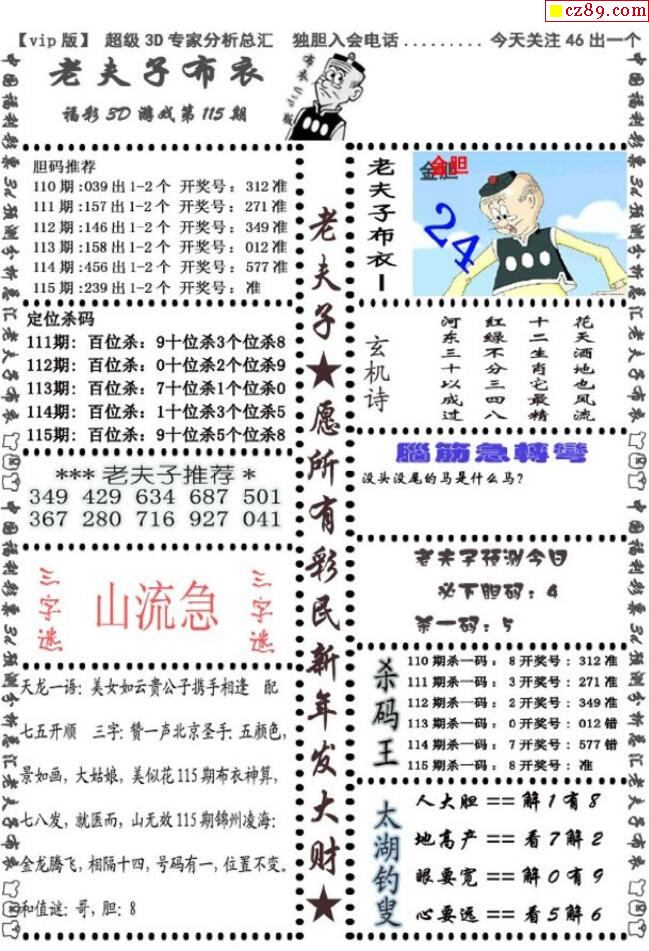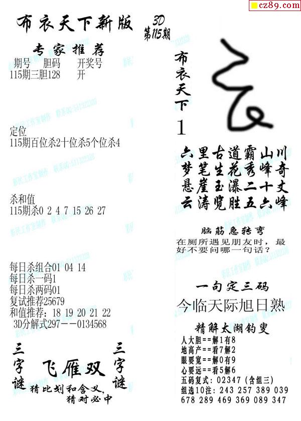 牛彩版3D字谜彩报图25年340期打印版