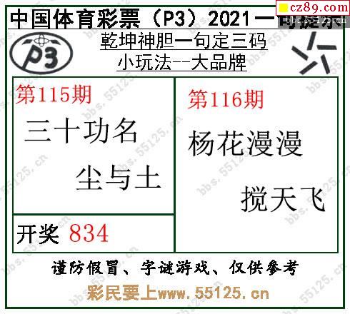 2021年116期牛彩网体彩P3画迷图谜汇总分享