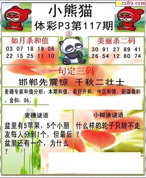 2021年117期牛彩网体彩P3画迷图谜汇总分享