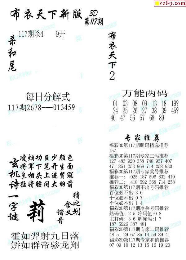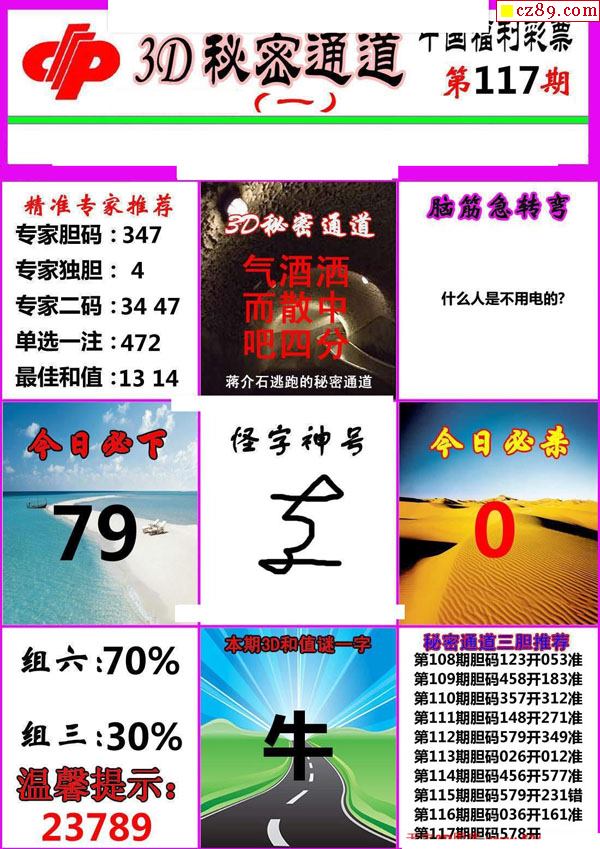 牛彩版3D字谜彩报图25年330期打印版