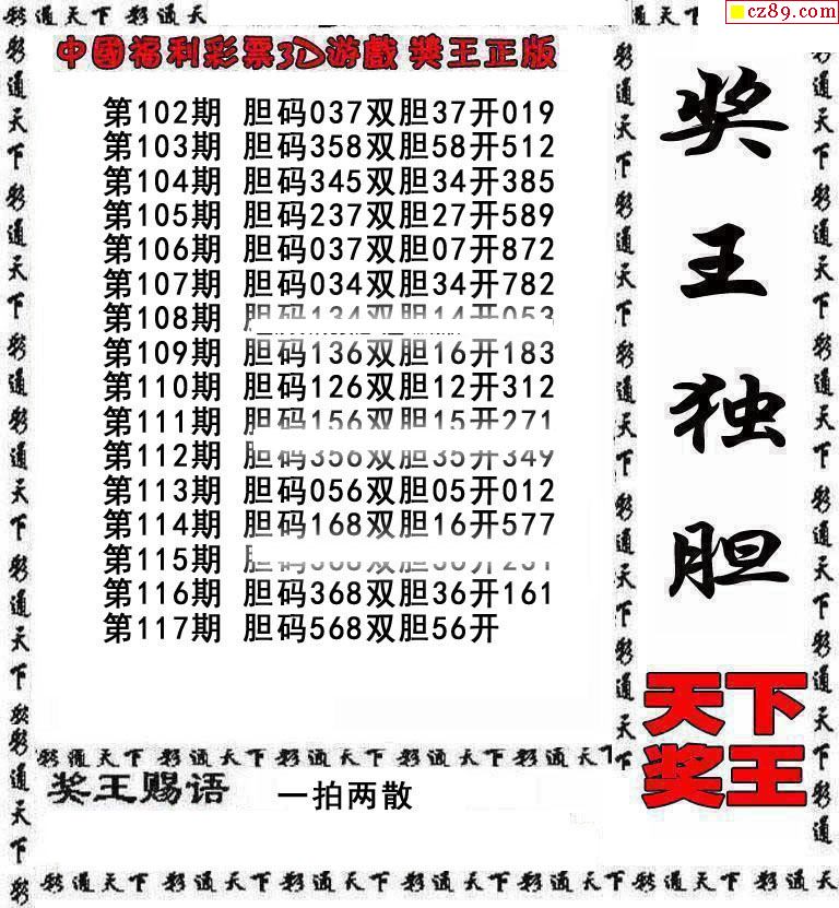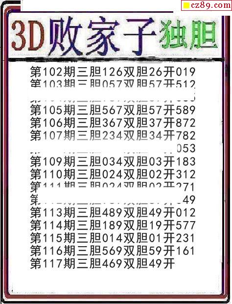 牛彩版3D预测彩报图25年330期打印版
