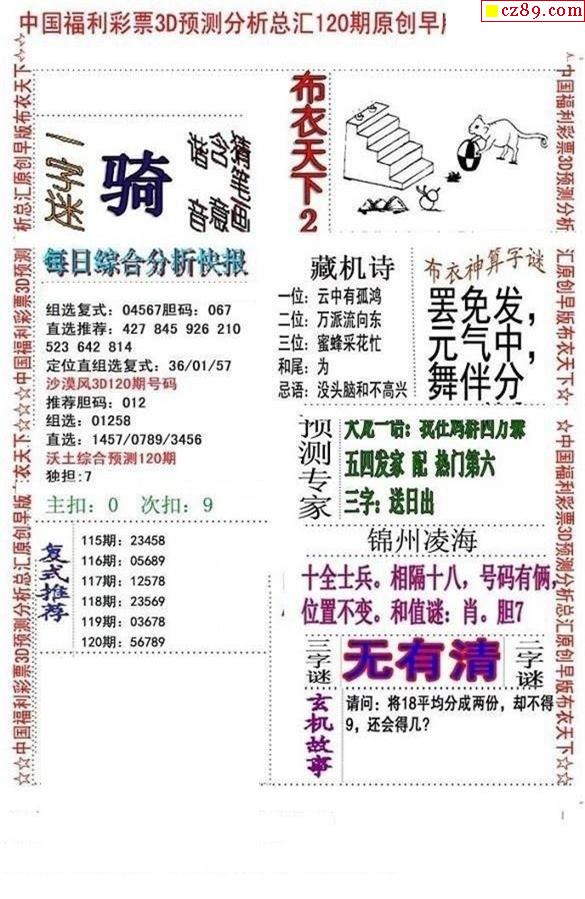 福彩3D2025337期 祁连牧哥百财纳福胆码图谜推荐