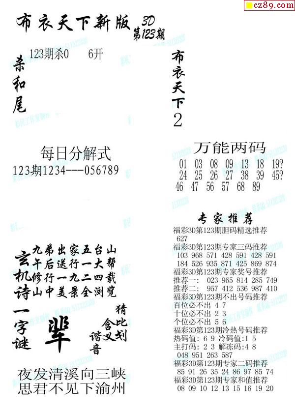 2026030期3D图谜汇总(一)