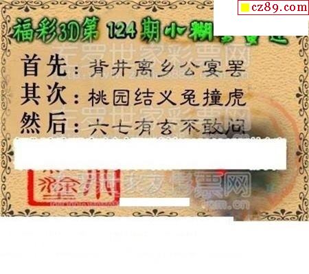 福彩3D2025331期彩赌侠一句定三码字图谜