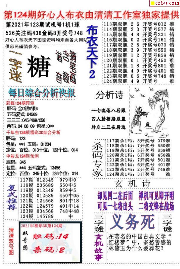 2021124期3D图谜汇总(八)