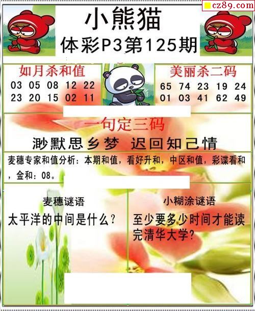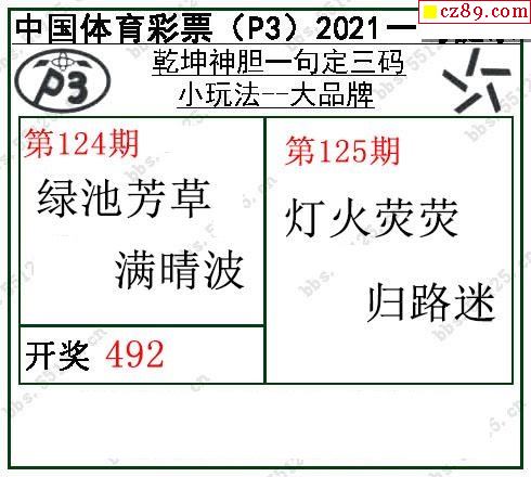 2021年125期牛彩网体彩P3画迷图谜汇总分享