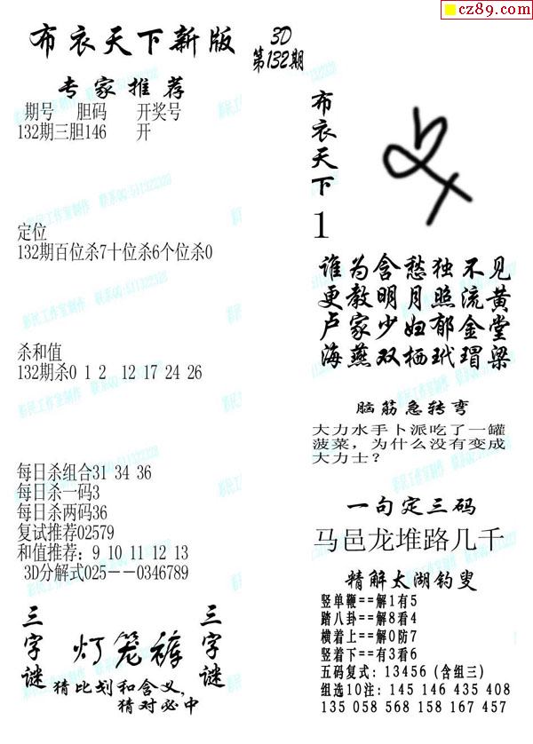 福彩3D2025340期 祁连牧哥百财纳福胆码图谜推荐