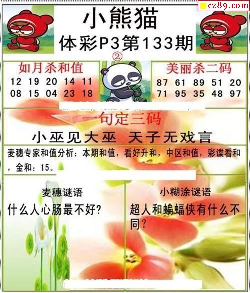 2021年133期牛彩网体彩P3画迷图谜汇总分享