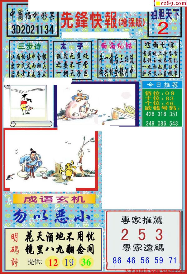 福彩3D2025336期 万家图谜三国胆拖杀图