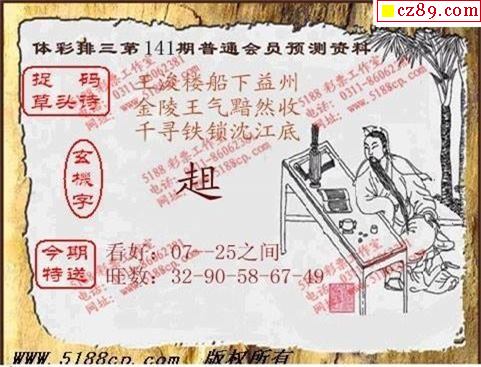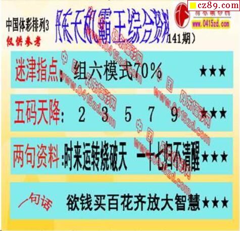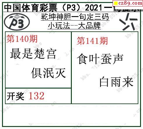 2021年141期牛彩网体彩P3画迷图谜汇总分享