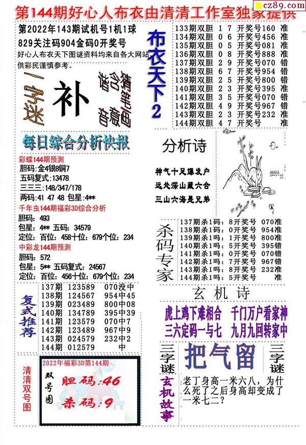 2021144期3D图谜汇总(八)