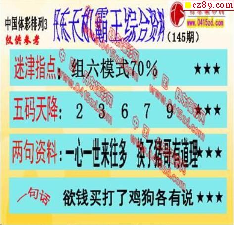 2021年145期牛彩网体彩P3画迷图谜汇总分享