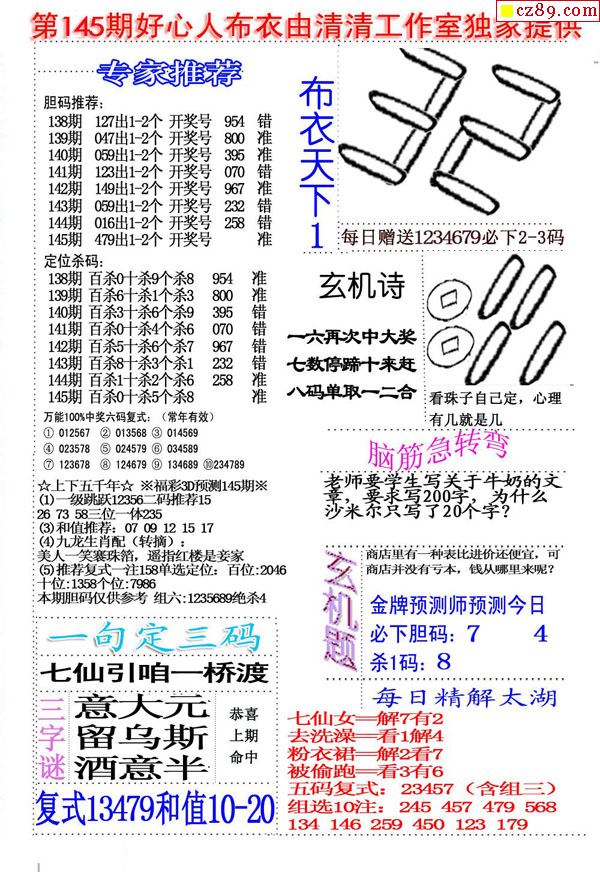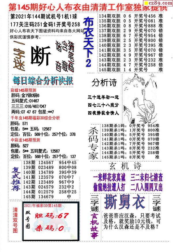 2021145期3D图谜汇总(八)