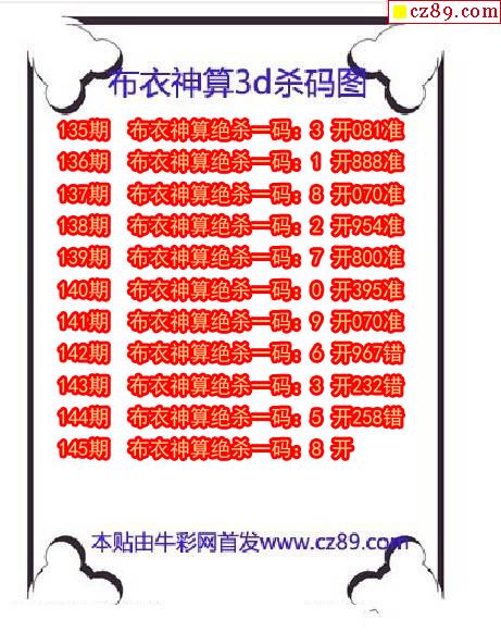 3D近十期试机号