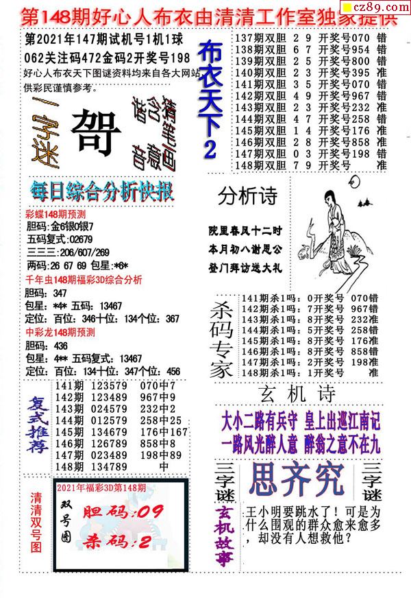 2021148期3D图谜汇总(八)