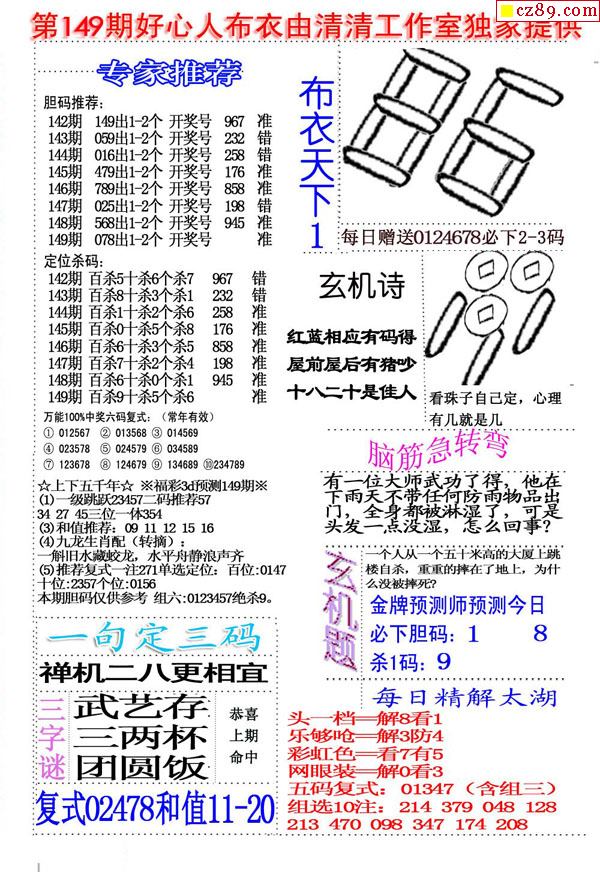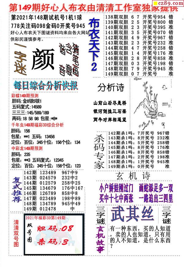 福彩3D2025344期 祁连牧哥百财纳福胆码图谜推荐