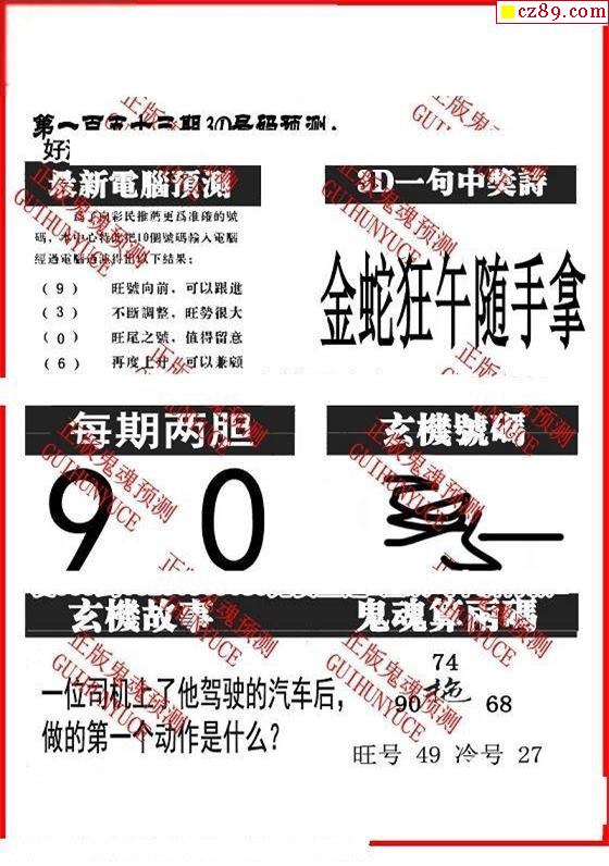 牛彩版3D字谜彩报图25年336期打印版