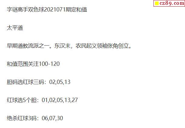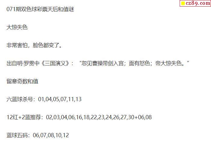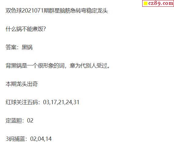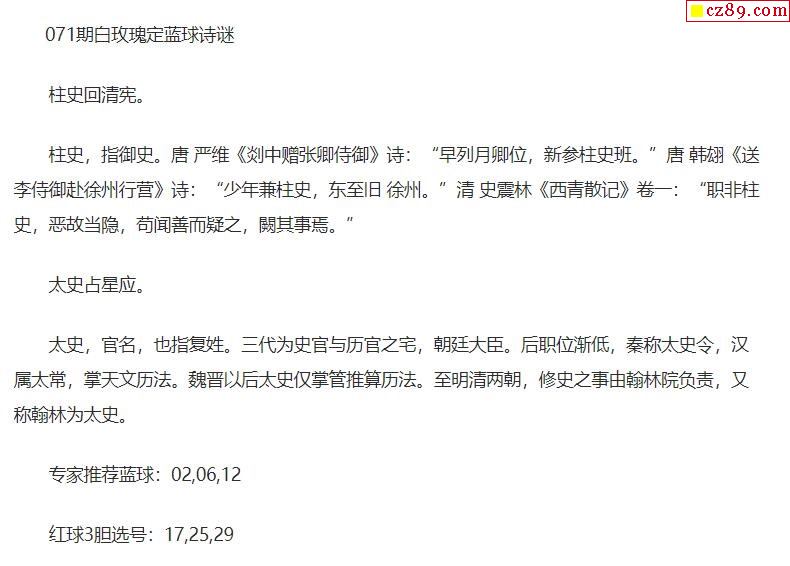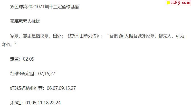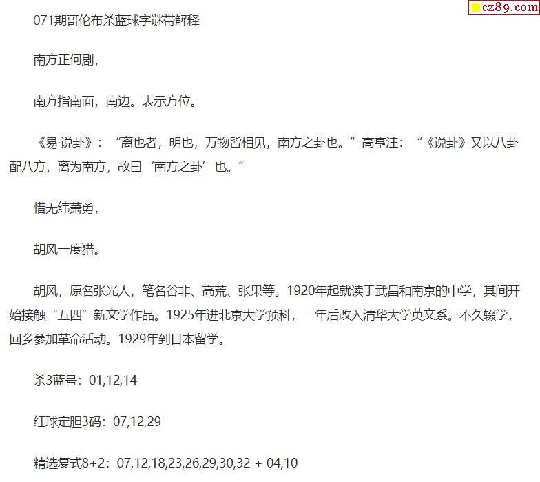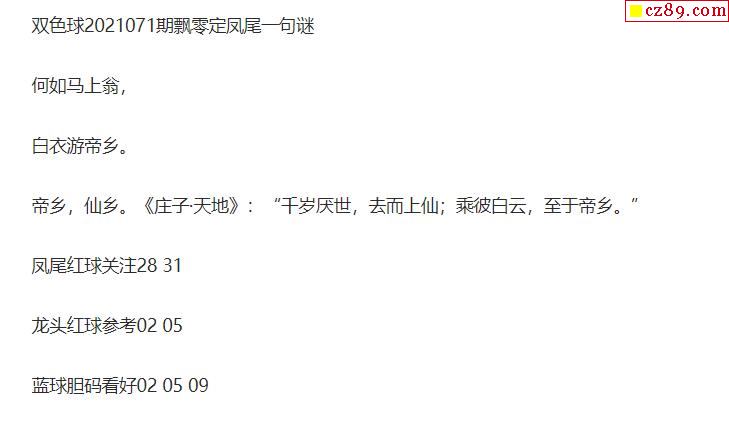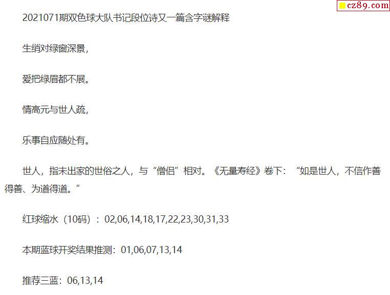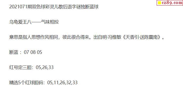 2021年071期牛彩网双色球字迷图谜汇总