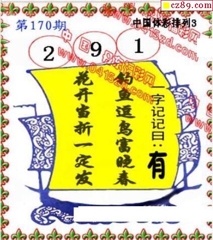 2021年170期牛彩网体彩P3画迷图谜汇总分享