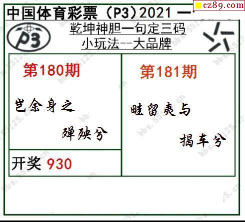 2021年181期牛彩网体彩P3画迷图谜汇总分享