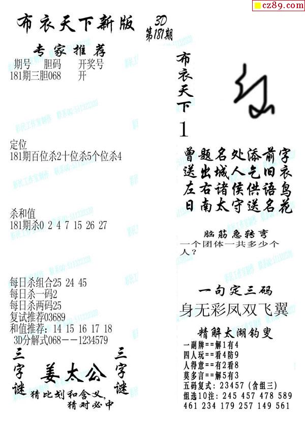 牛彩版3D字谜彩报图25年345期打印版