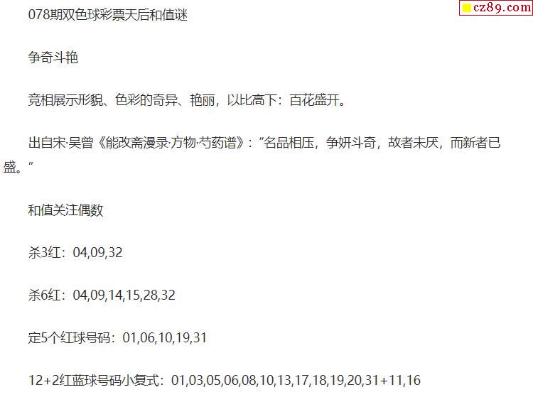 25年双色球146期 秋水仙子七步定乾坤段位诗迷