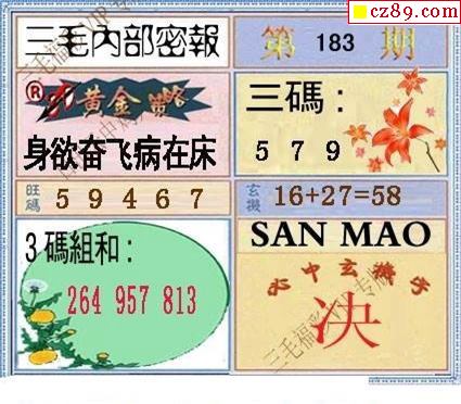 三毛图2021183期3d图谜