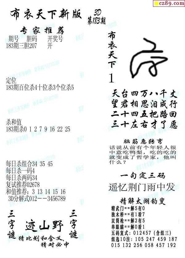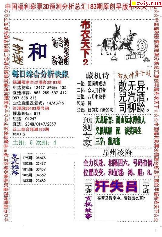 福彩3D2025335期 祁连牧哥百财纳福胆码图谜推荐
