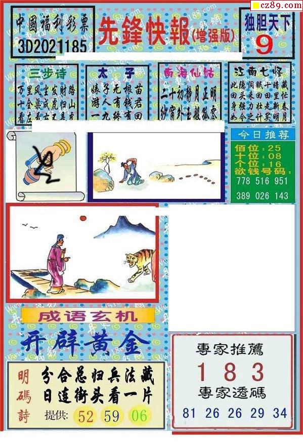 福彩3D2025334期 祁连牧哥百财纳福胆码图谜推荐