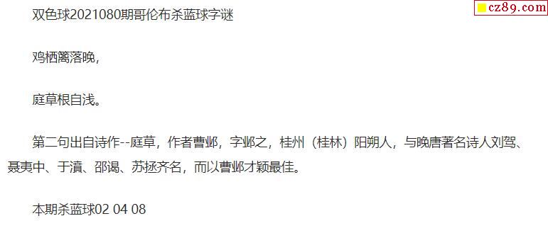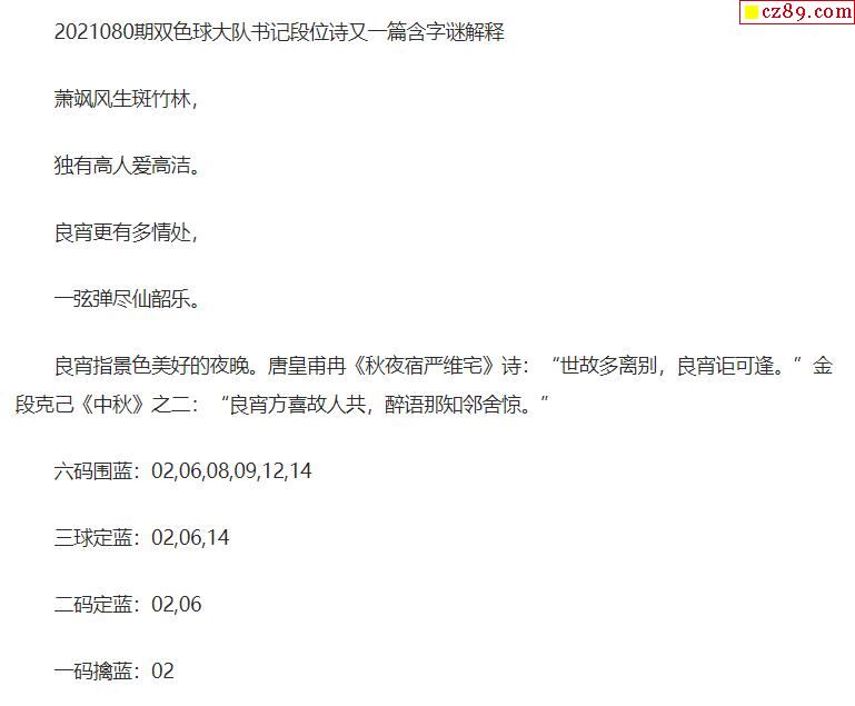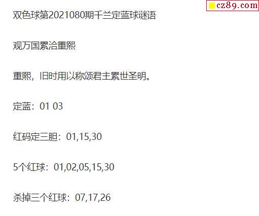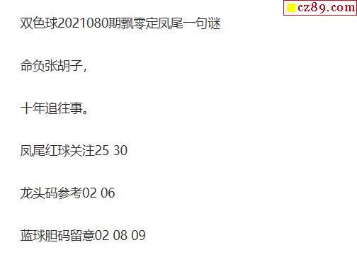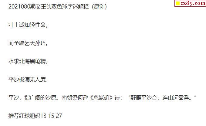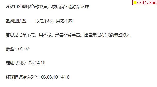 2021年080期牛彩网双色球字迷图谜汇总