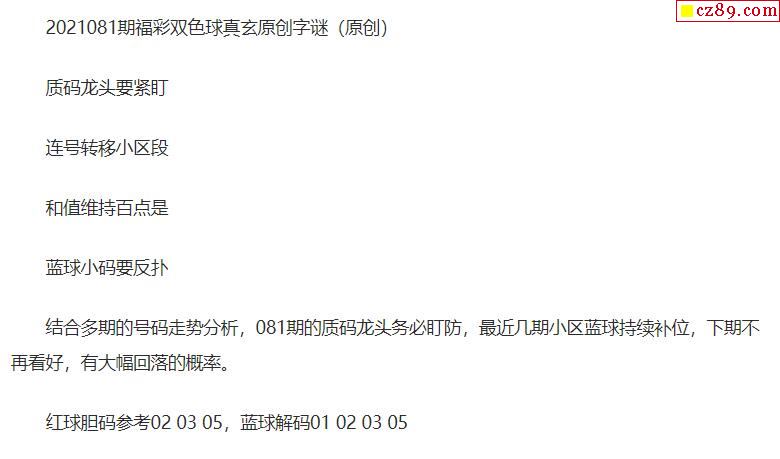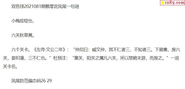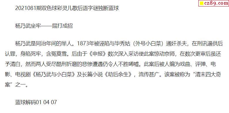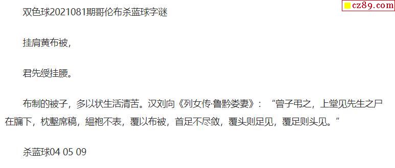2021年081期牛彩网双色球字迷图谜汇总